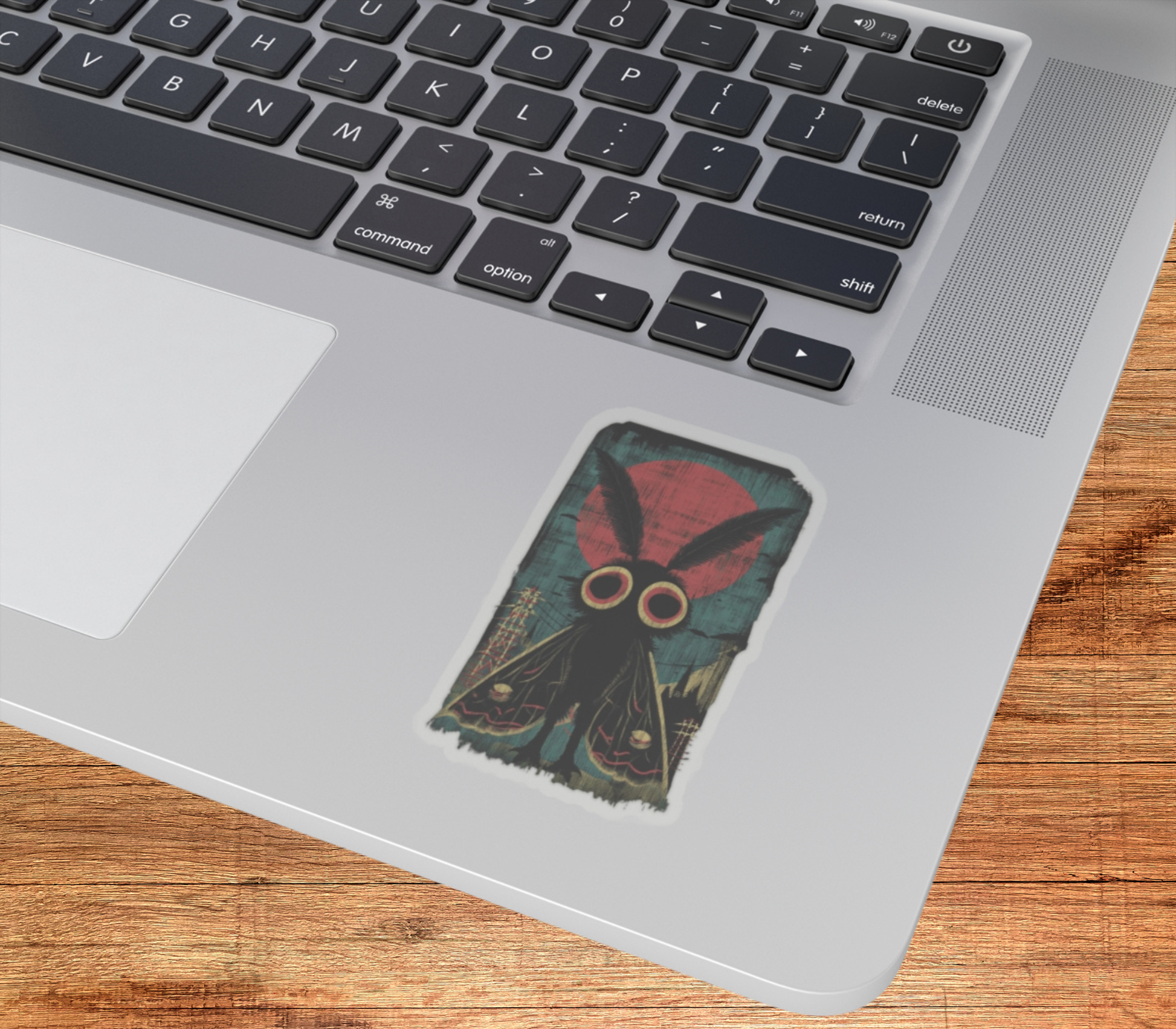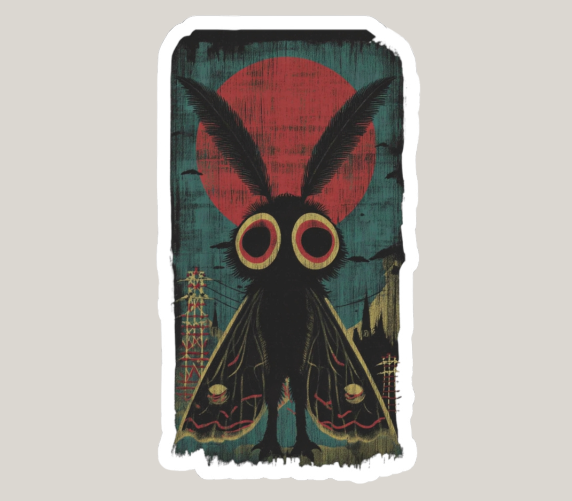 This Mothman Vintage Poster sticker features our iconic cryptid artwork in a durable, die-cut vinyl format — perfect for laptops, water bottles, notebooks, and everyday gear.
