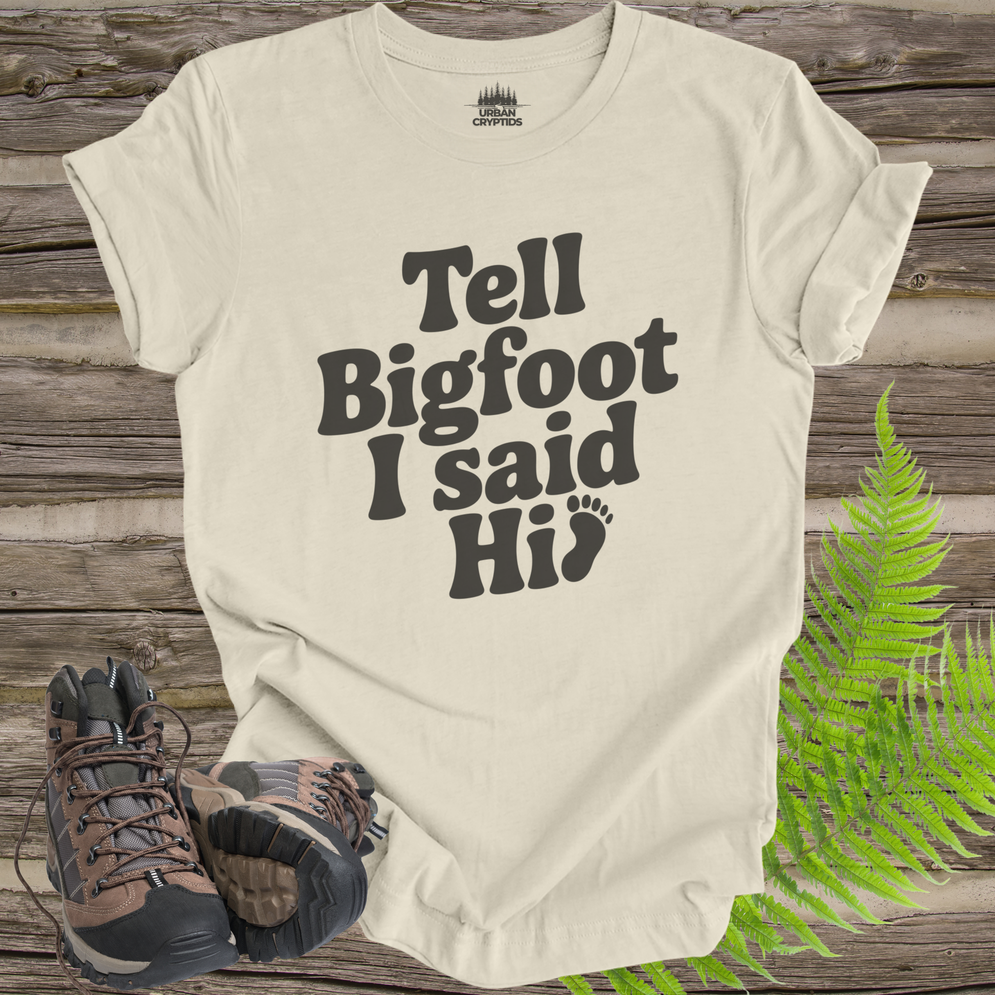 Tell Bigfoot I Said Hi Shirt – Funny Bigfoot Tee | Sasquatch Cryptid Shirt